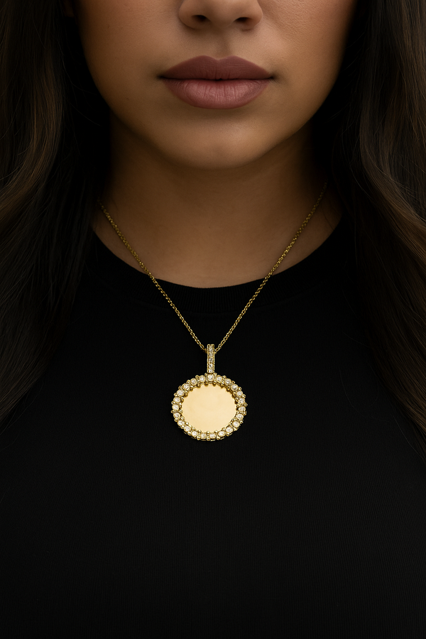 10k Solid Gold Circle Picture Pendant - Standard & Micro