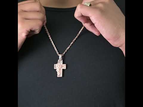 This 10k rose gold diamond baguette Jesus head pendant exudes elegance with its intricate design and 1.02 carats total weight of sparkling diamonds. The unique baguette-cut diamonds beautifully accentuate the features of the Jesus head, creating a striking and meaningful piece of jewelry. Meticulously crafted with attention to detail, this pendant offers a blend of luxury and spiritual significance. Perfect for expressing faith and style, it adds a touch of sophistication and reverence to any ensemble.