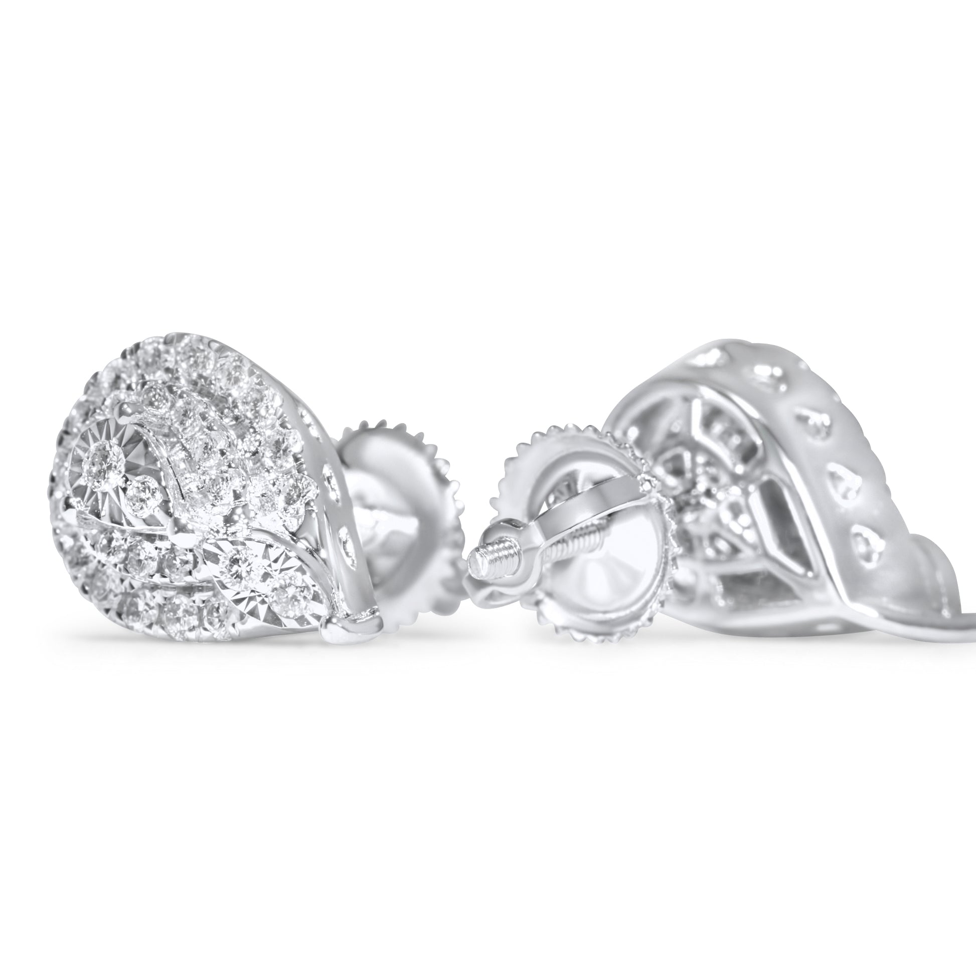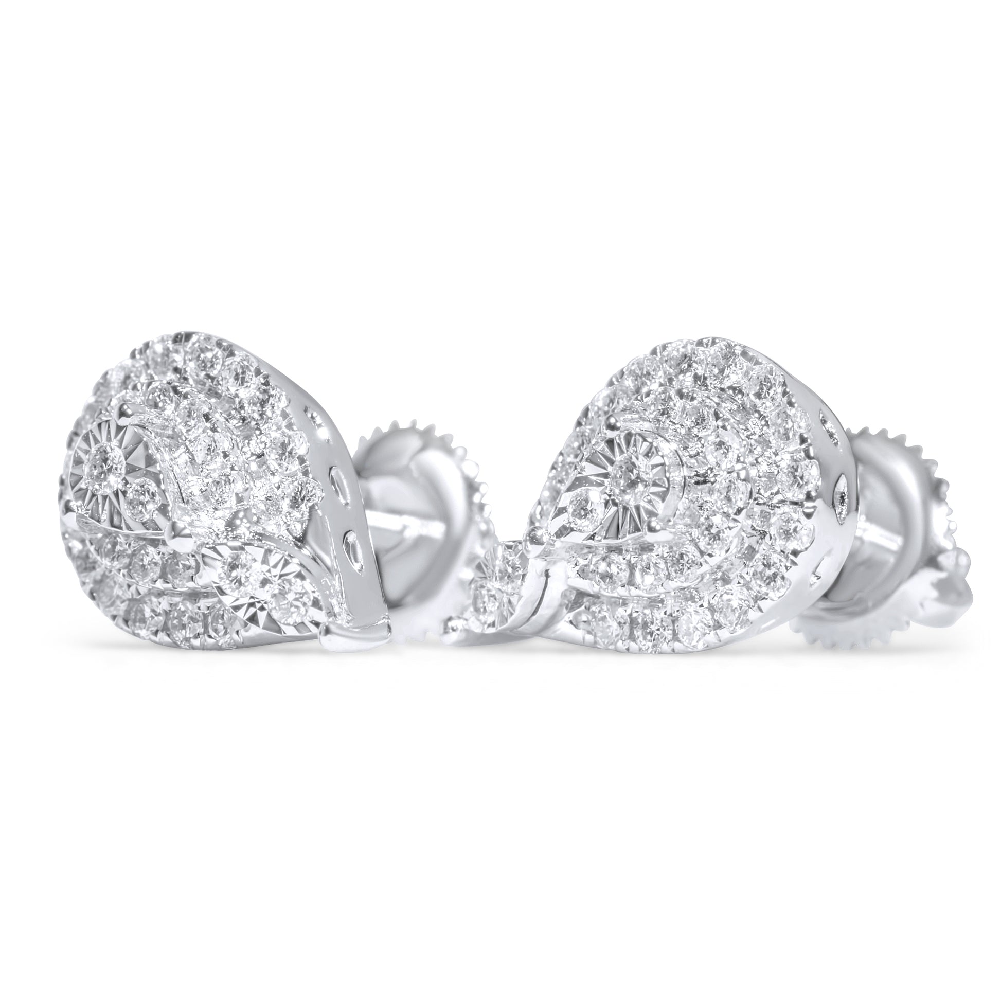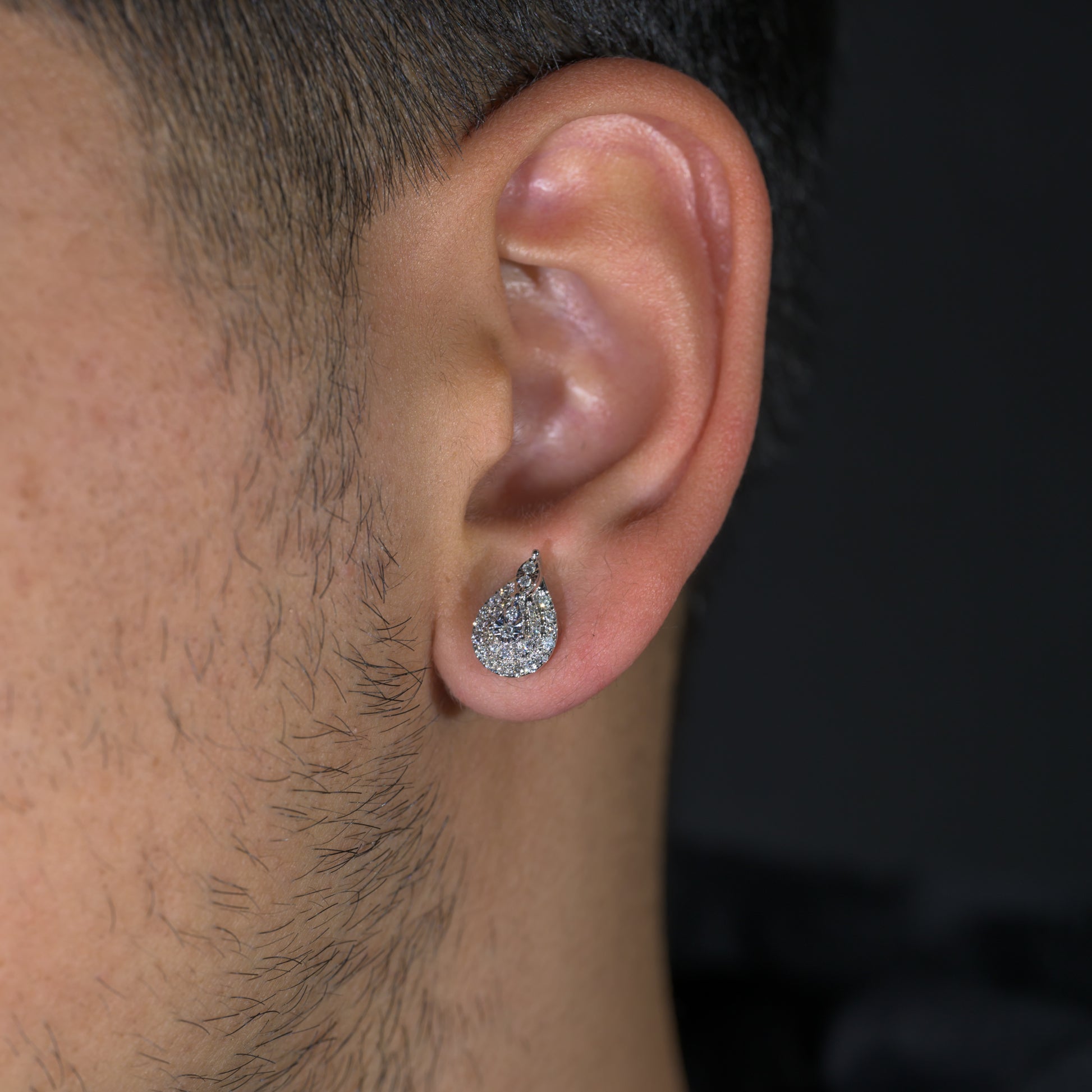 Indulge in timeless elegance with these 14k White Gold Diamond Earrings. Crafted with meticulous attention to detail, each earring features a teardrop-shaped design adorned with multiple small diamonds. The setting enhances the sparkle and brilliance of the diamonds, creating a captivating effect. Perfect for both men and women, these diamond stud earrings exude sophistication and charm. Elevate any outfit with these exquisite earrings that are sure to turn heads.