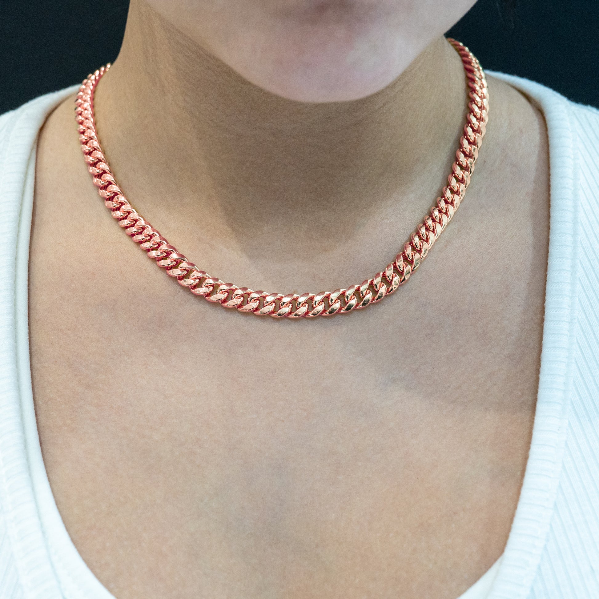The 10K Hollow Gold Cuban Chain 7.5mm comes in three colors including Rose, Yellow, and White Gold.