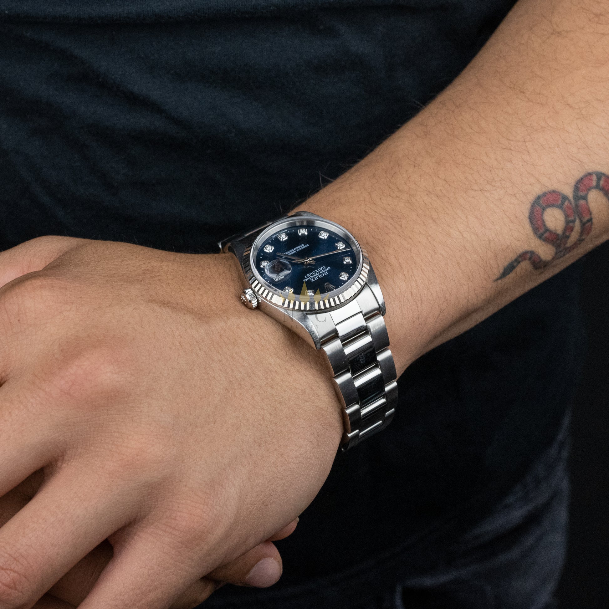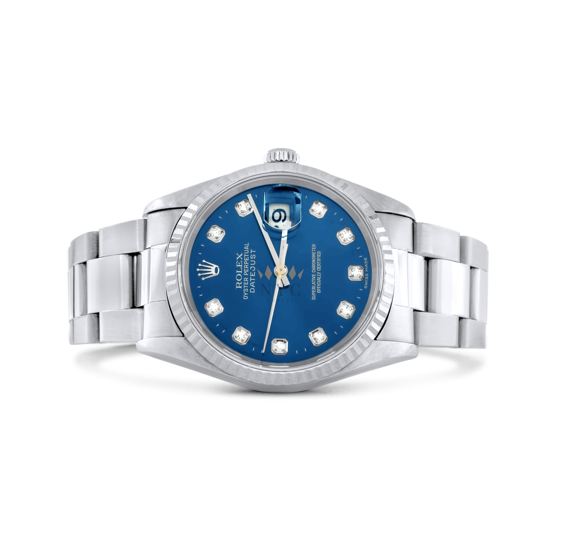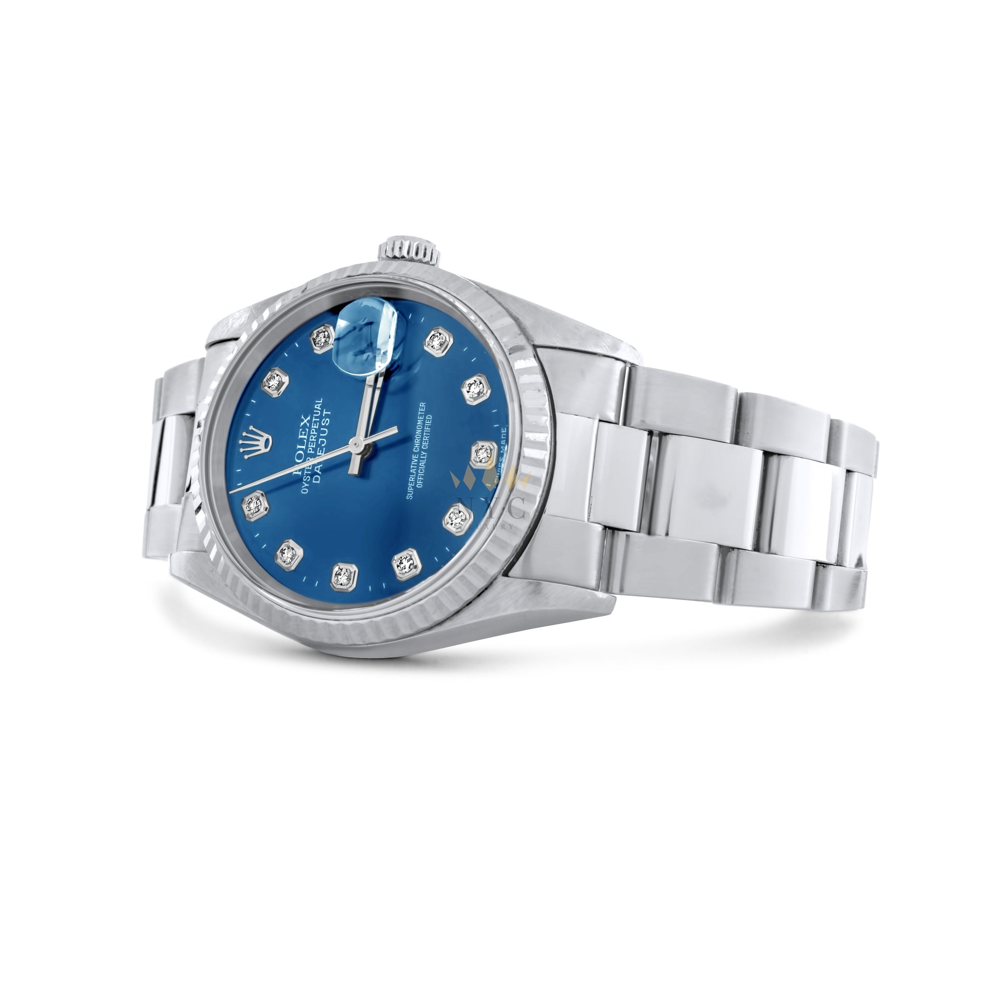 Rolex Datejust 36mm, White Gold Fluted Bezel, Blue Diamond Dial, Oyster Bracelet Ref. 16234