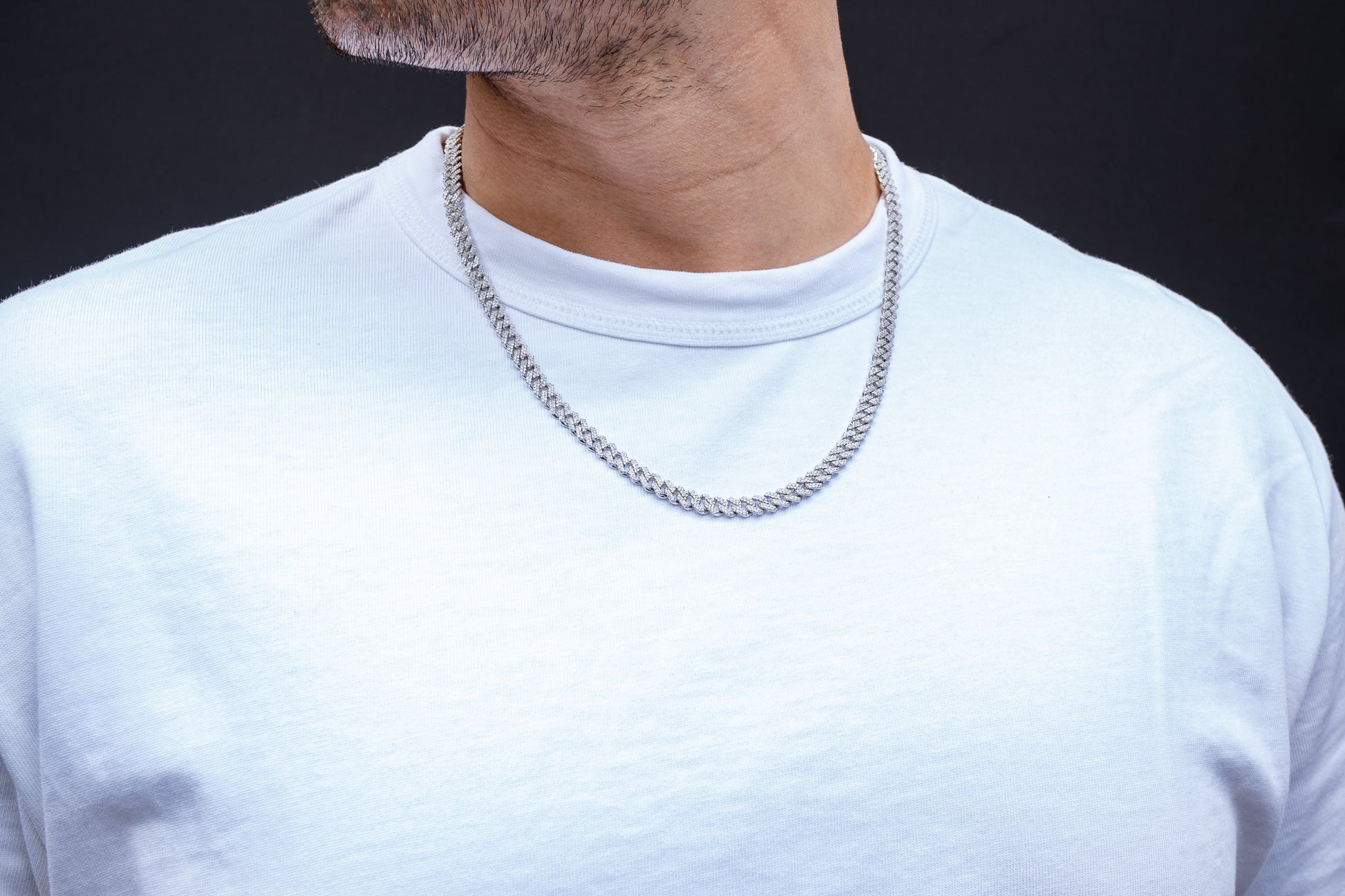 10K Solid Diamond Chain White Gold Prong Cuban Link 6mm 4.79Ctw (Double-row Diamonds)