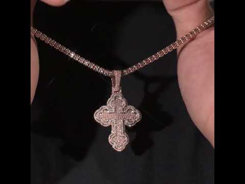 10k Two-Tone Rose and White Gold Diamond Cross Pendant 0.87 ctw