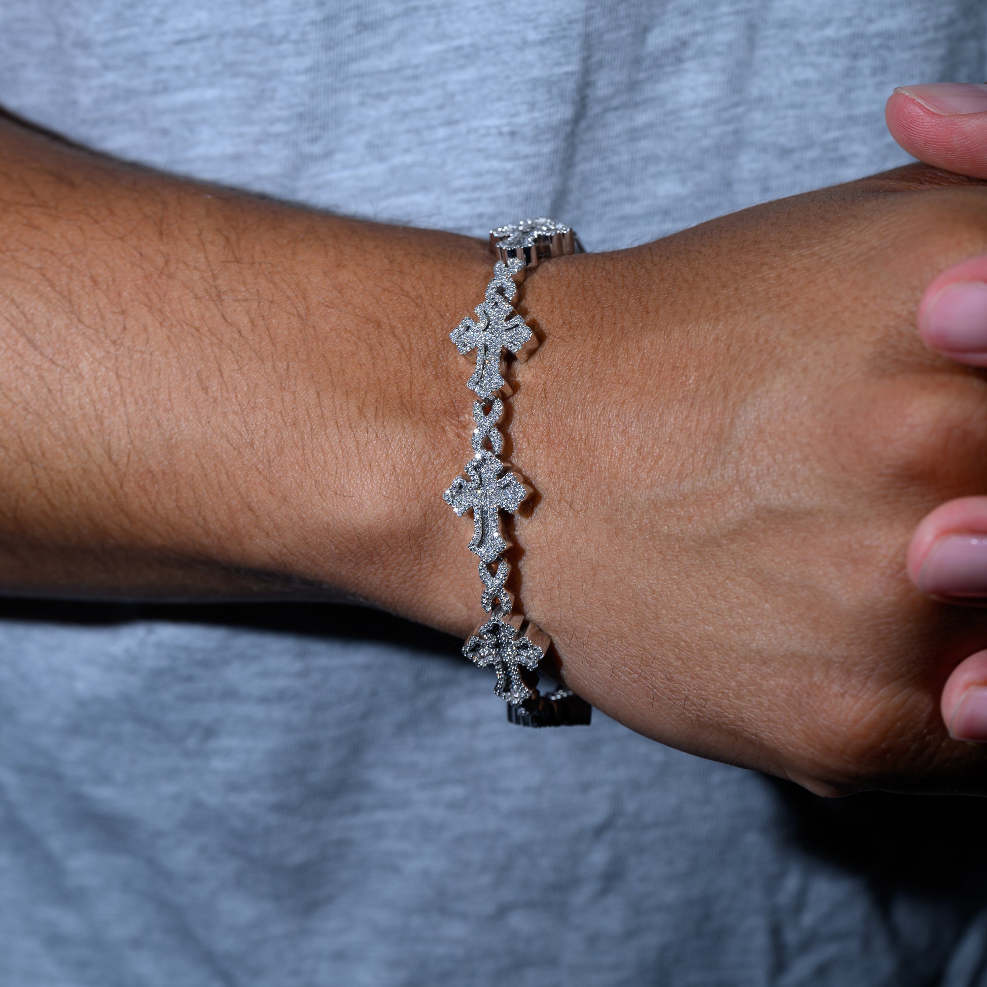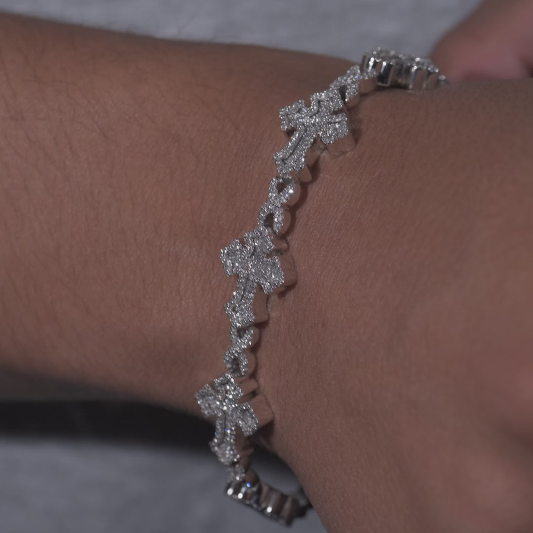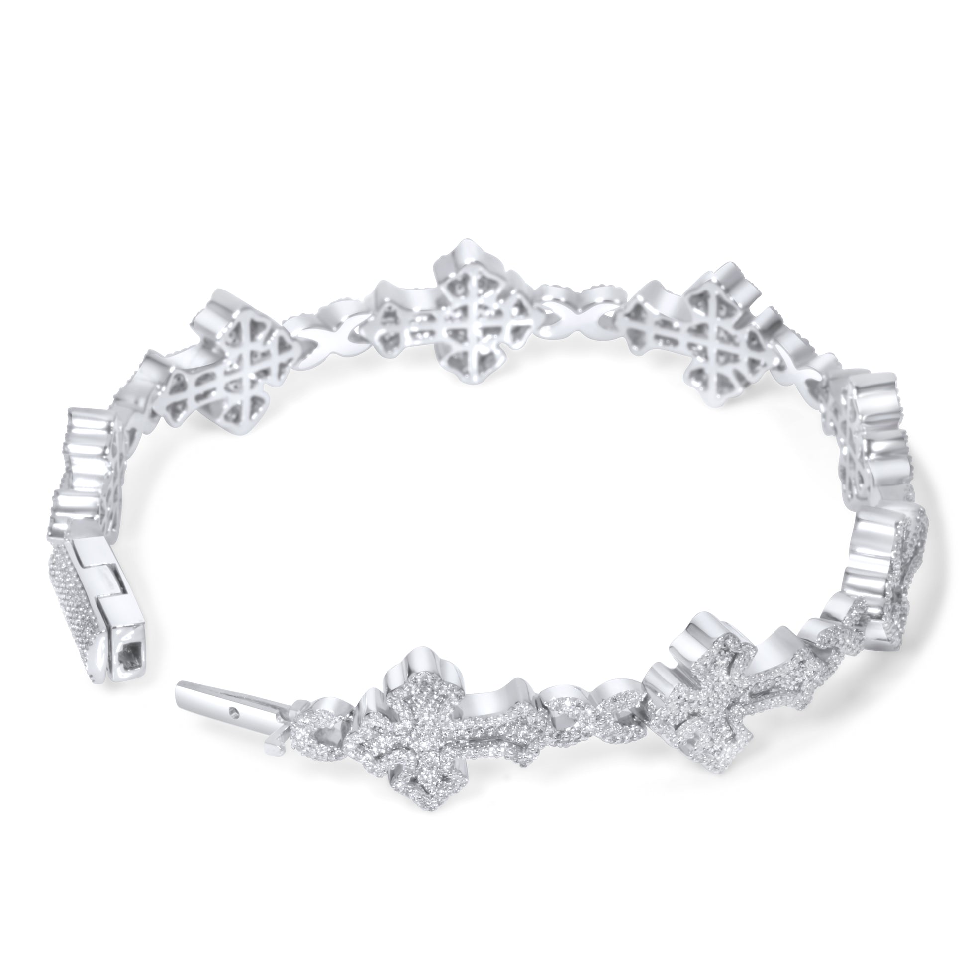 10k White Gold Diamond Cross Bracelet 2.47 ctw
