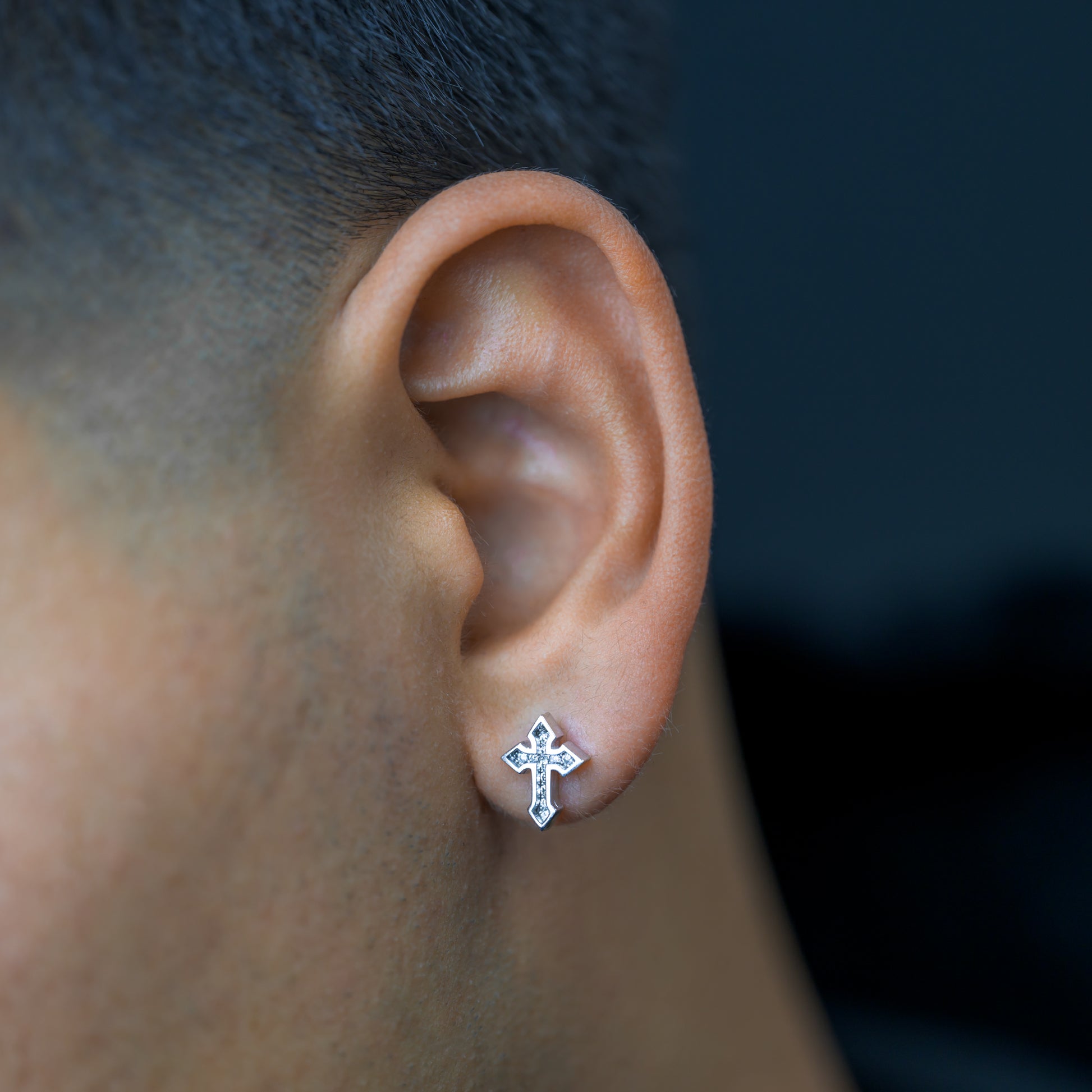 Introducing our 10K White Gold Diamond Cross Earrings. These beautiful earrings are perfect for the stylish individual who wants to make a statement. These earrings are made of high-quality gold and set with .25 carats of pure white diamonds. The cross design is eye-catching and the white gold color is sure to catch anyones attention. Whether you're dressing up for a special occasion or just looking for a simple yet stylish piece of jewelry, these earrings are sure to please. Order your pair today!
