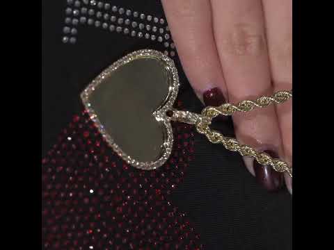 This 10k yellow gold diamond heart memory pendant boasts 1.79 carats total weight of shimmering diamonds, symbolizing love and cherished memories. The heart-shaped design exudes elegance and sentimentality, meticulously crafted for timeless appeal. Versatile for everyday wear or special occasions, it adds sophistication and heartfelt significance to any ensemble.