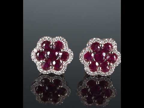 14k Solid Gold Diamond Ruby Cluster Earrings
