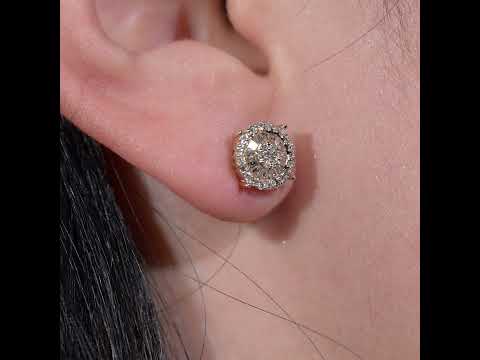 The 14k Solid Gold Round Diamond Baguette Earrings 0.42 ctw comes in two colors Yellow and White Gold.