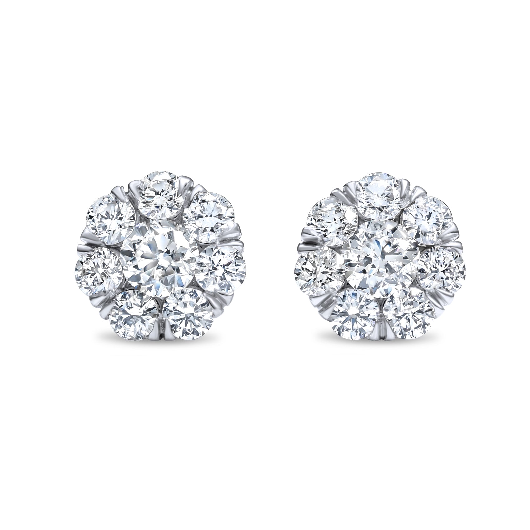 14K White Gold Diamond Cluster Earrings 2.20ctw