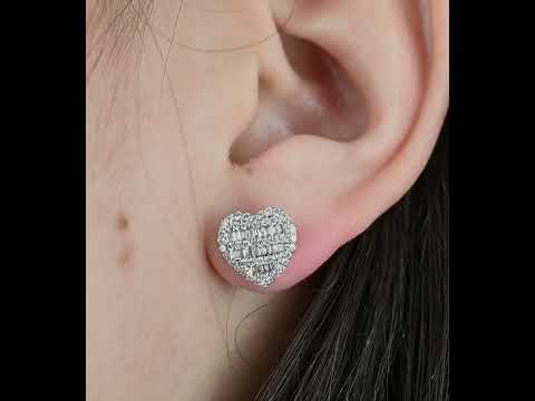 14K White Gold Diamond Baguette Heart Earrings 0.50 ctw