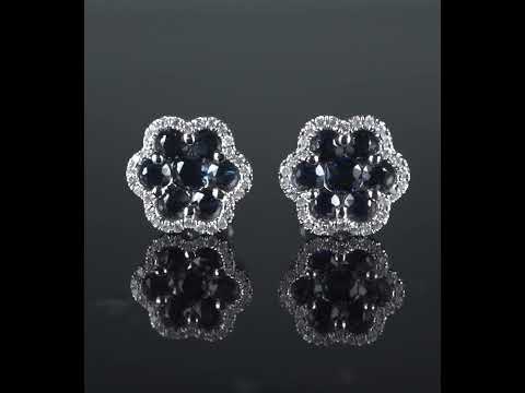 Adorn your ears with these exquisite 14k White Gold Diamond Sapphire Cluster Earrings. Handcrafted from only the highest quality materials, these earrings boast a stunning design of 3.51 grams of 14k White Gold adorned with a 0.20 ctw of round diamonds and 1.12 ctw of sapphires. The earrings have a length of 0.43 inches and a width of 0.57 inches, making them the perfect accessory for any special occasion. Whether you are getting dressed up for a night out or for a more formal event, these earrings will become your go-to accessory. Treat yourself to a timeless piece of jewelry that will last a lifetime.