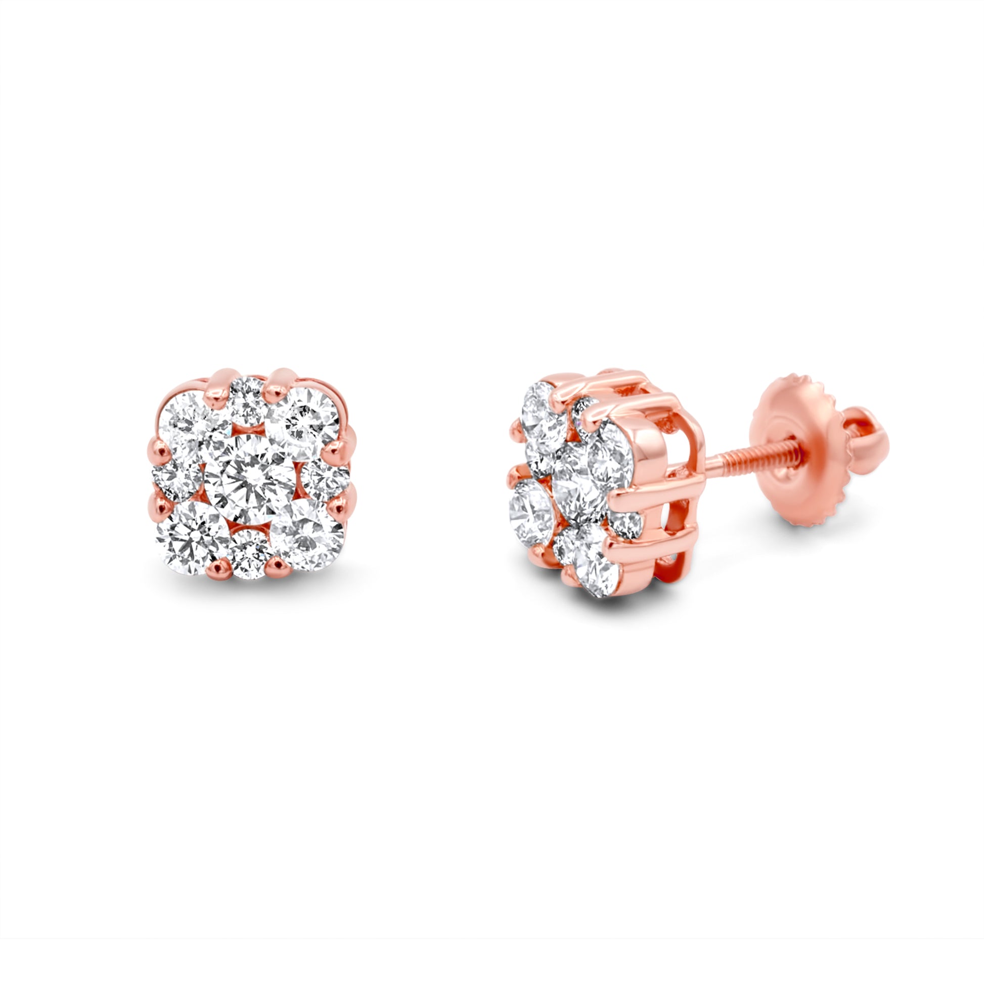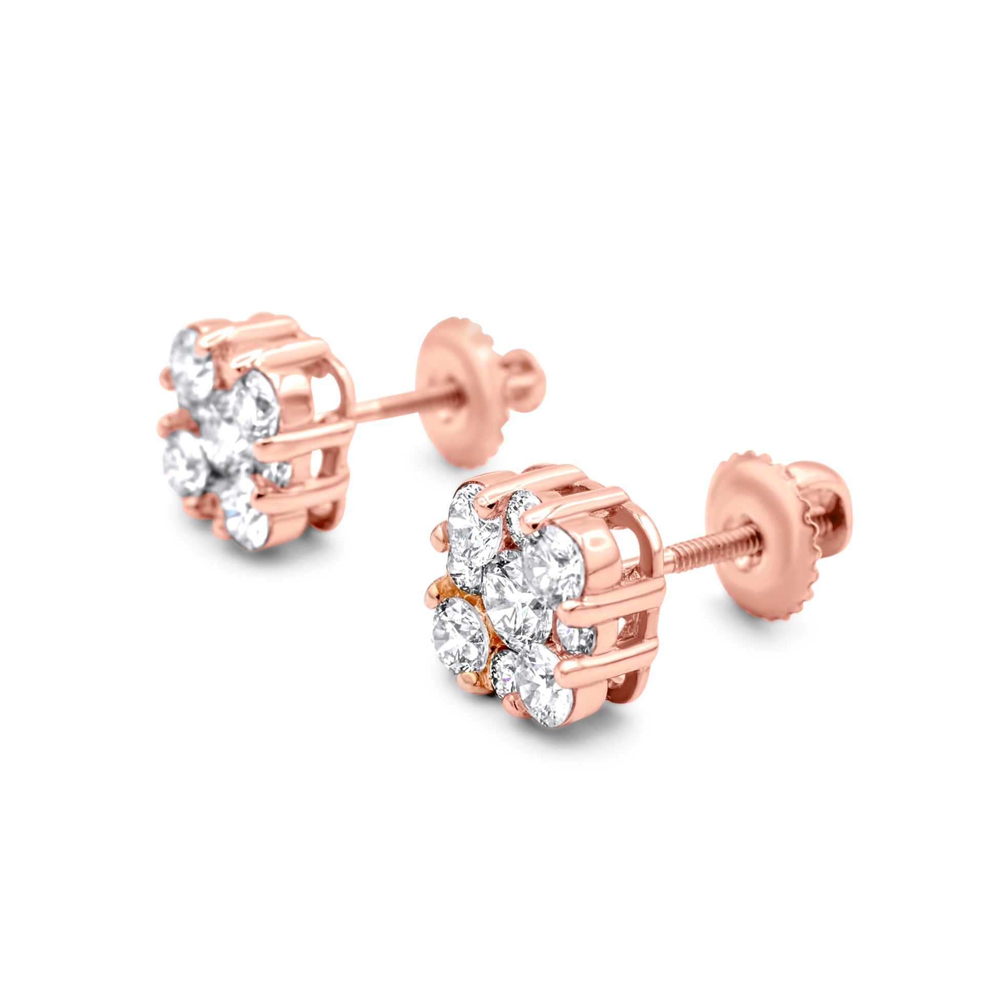 14k Yellow Gold Diamond Cluster Earrings 1.45ctw