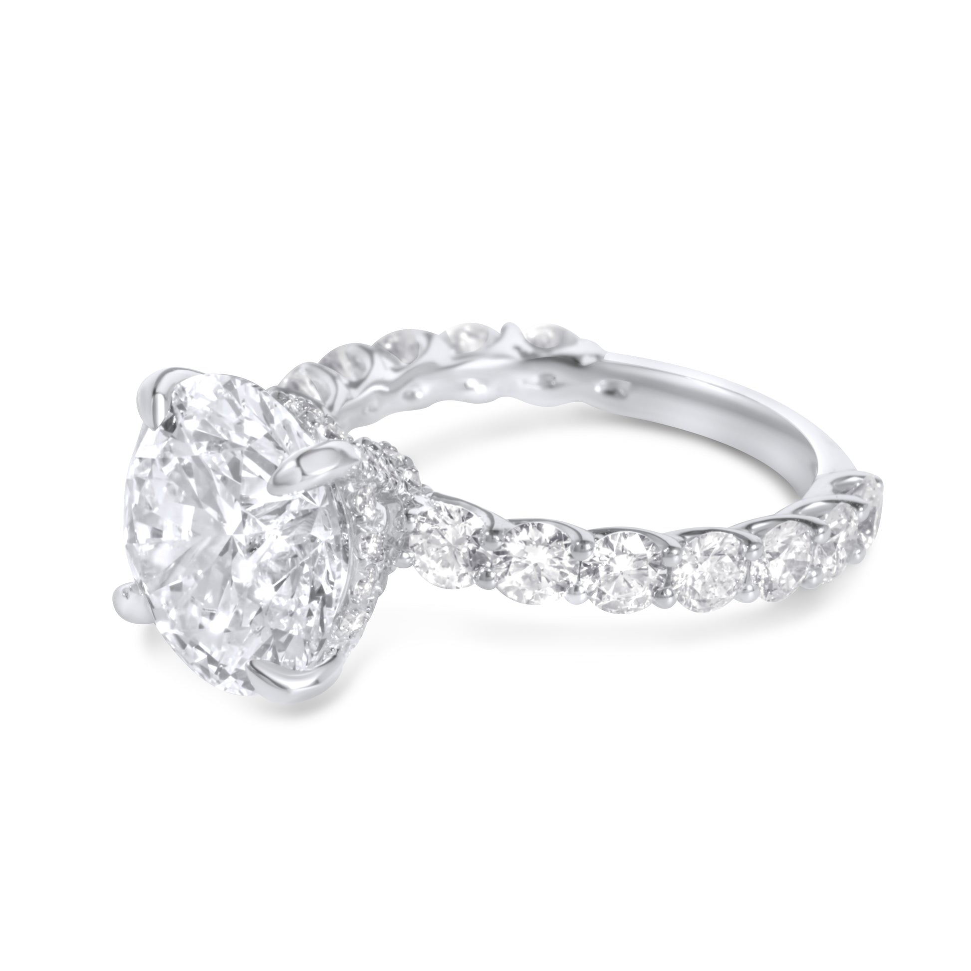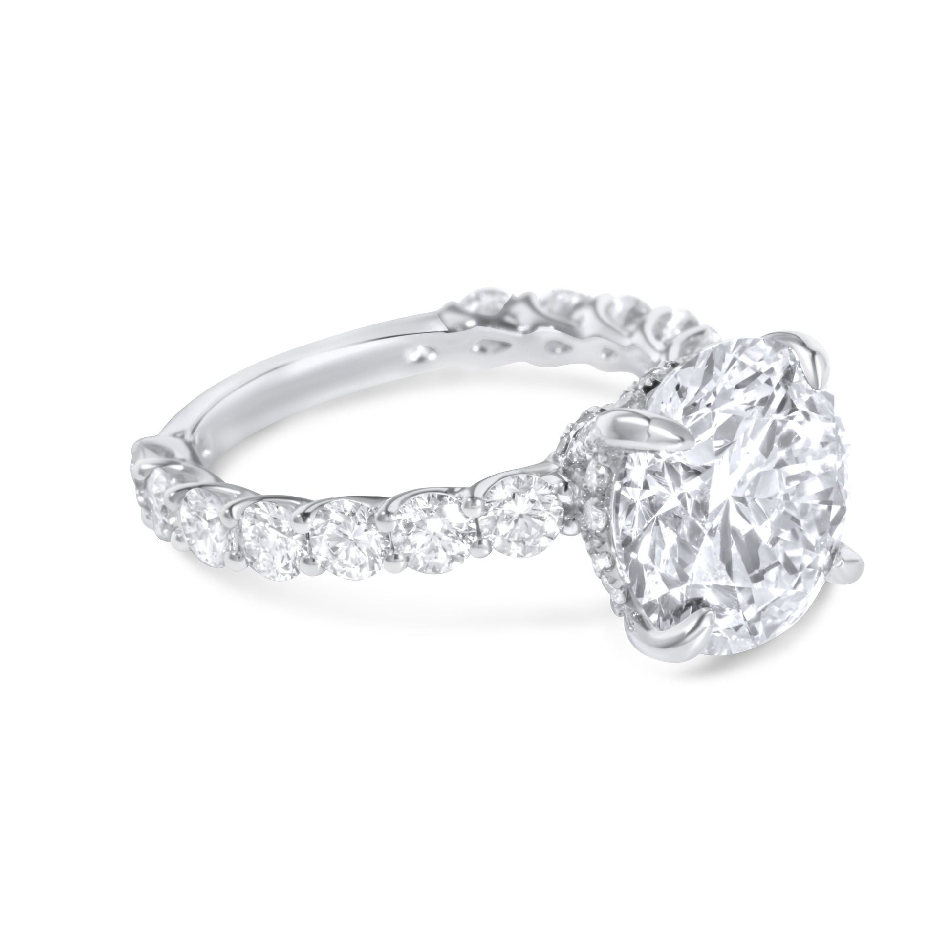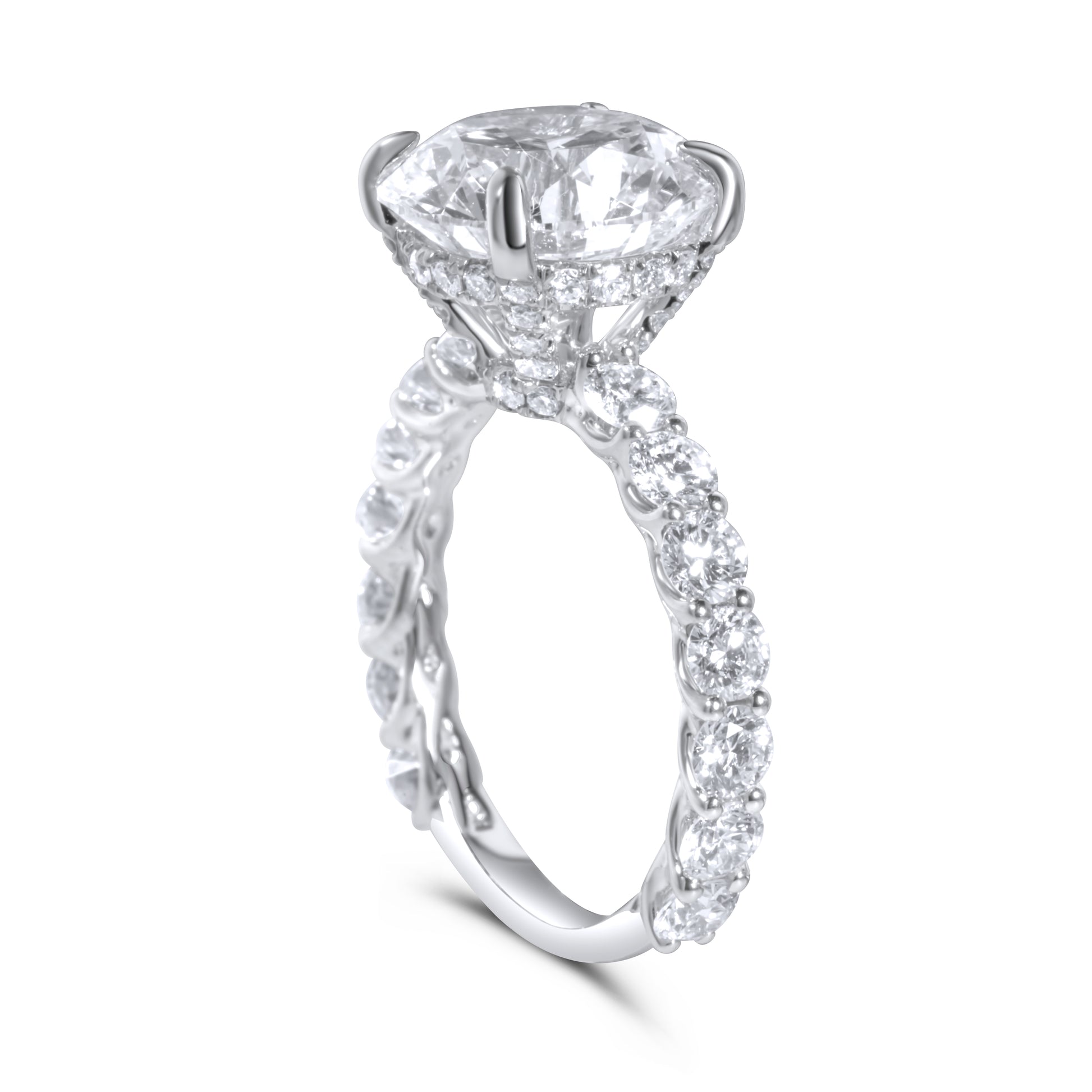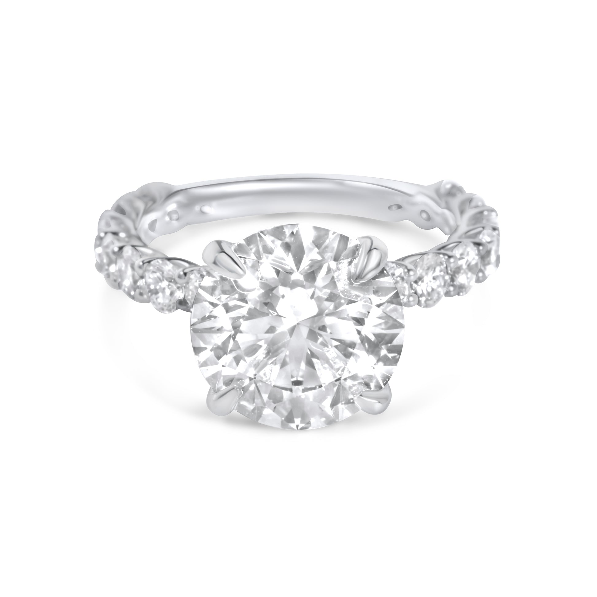 18k White Gold Round Diamond Ring Featuring a 5.00ct center stone followed by 1.85ct round diamonds all around the band and setting.